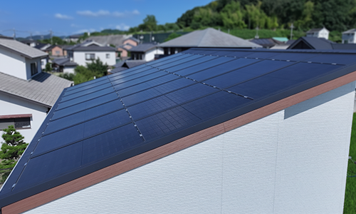 屋根材と太陽光発電パネルを一体化させた次世代の住宅用ソーラーシステム 従来の屋根置き型のソーラーパネルとは異なり、屋根そのものが発電するため、美観を損なわず、コストも削減できる画期的なシステムです。